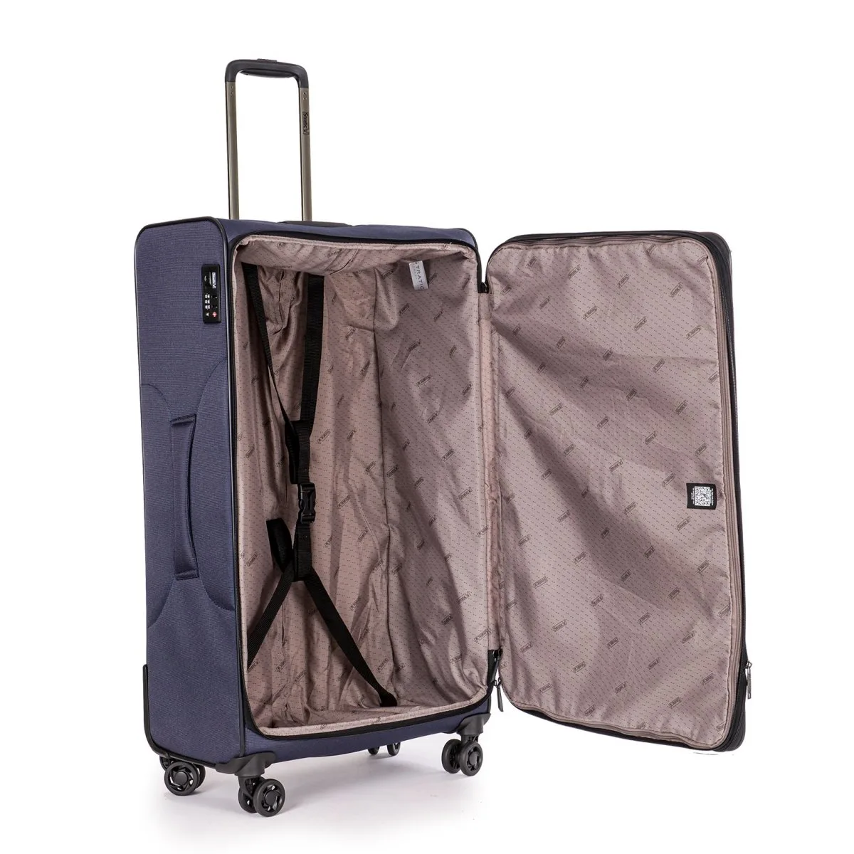 Die vier leichtläufigen 360° drehbaren Doppelrollen und der ergonomische Handgriff ermöglichen auch bei schwereren Lasten einen leichten Transport. Die beiden Aussenfächer ermöglichen einen leichten und sofortigen Zugriff. Das Hauptfach ist sehr geräumig und kann mit einem 2-Wege-Reissverschluss geschlossen werden. Die aus Polyester gefertigten Koffer haben zudem ein eingelassenes TSA-Schloss. Sollte der Platz nicht ausreichen kann der Koffer von 105 L auf 120 L erweitert werden. Mit STRATIC CONNECT NFC-Chip ausgestattet.