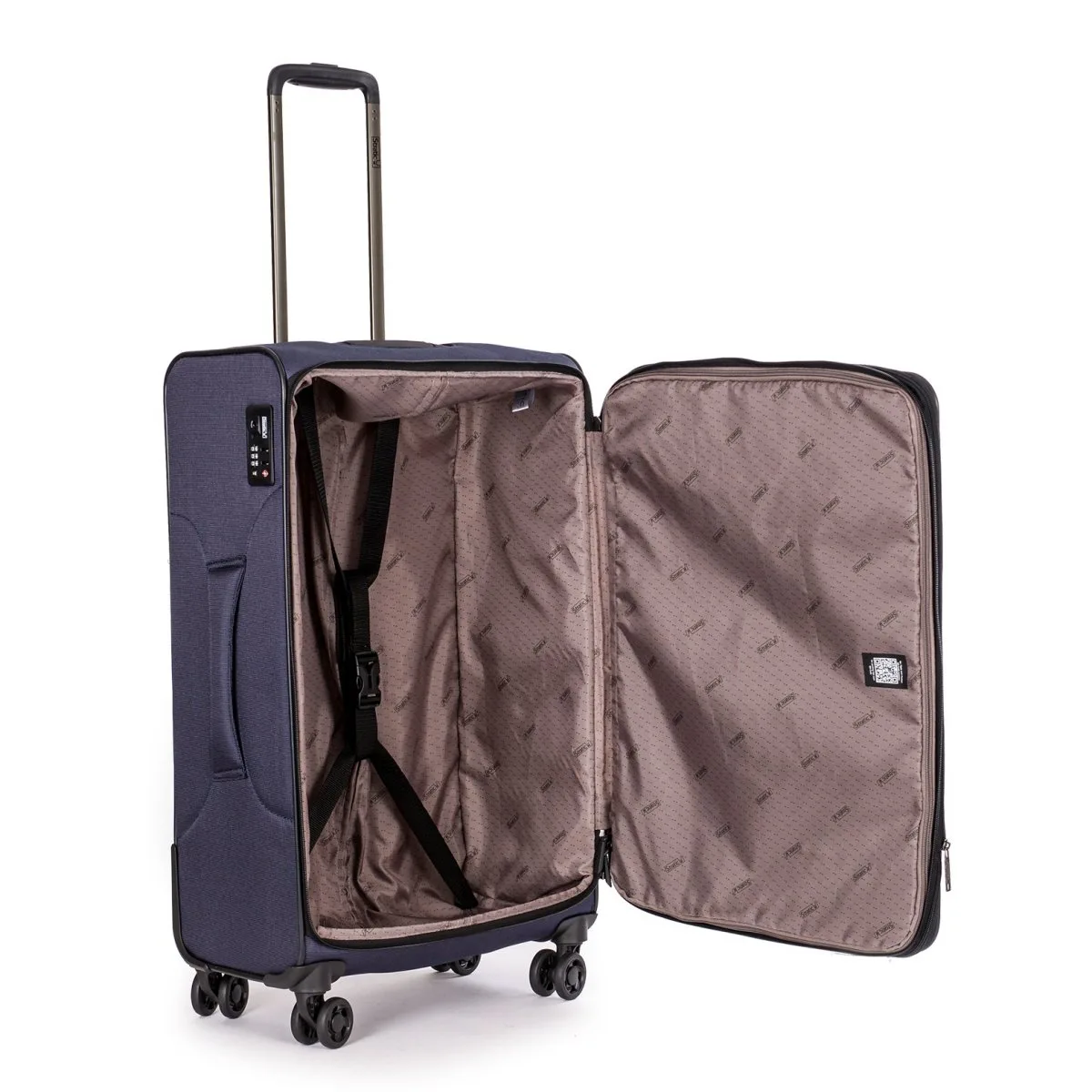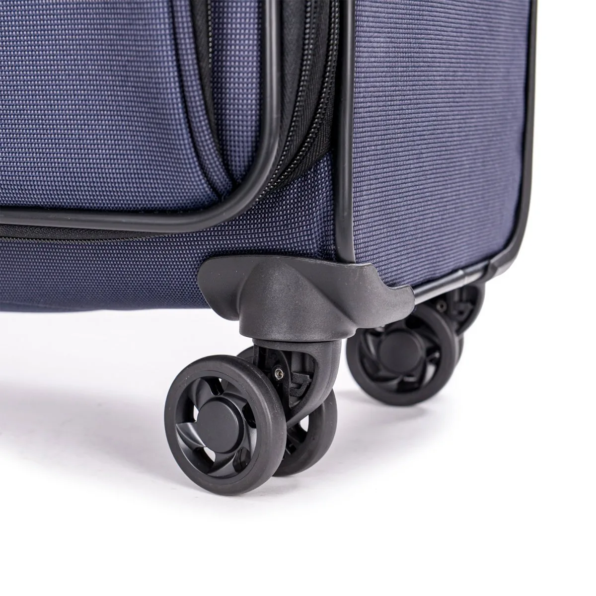 Die vier leichtläufigen 360° drehbaren Doppelrollen und der ergonomische Handgriff ermöglichen auch bei schwereren Lasten einen leichten Transport. Die beiden Aussenfächer ermöglichen einen leichten und sofortigen Zugriff. Das Hauptfach ist sehr geräumig und kann mit einem 2-Wege-Reissverschluss geschlossen werden. Die aus Polyester gefertigten Koffer haben zudem ein eingelassenes TSA-Schloss. Sollte der Platz nicht ausreichen kann der Koffer von 78 L auf 88 L erweitert werden. Mit STRATIC CONNECT NFC-Chip ausgestattet.
