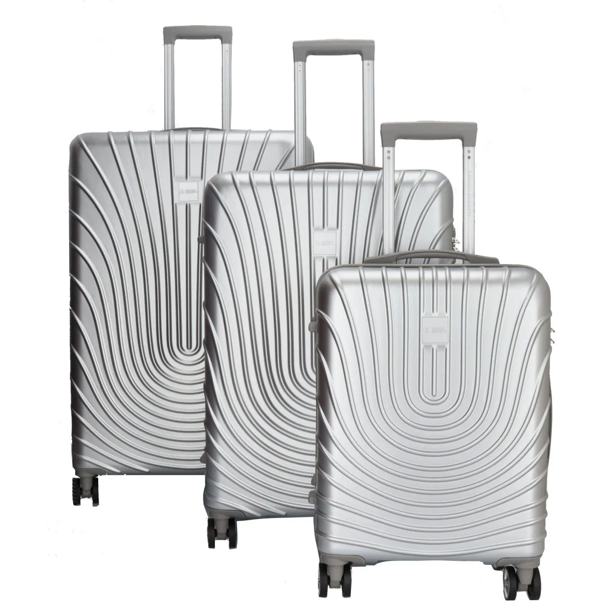 Handwerkskunst seit 1946! Reisetrolley-Set von Enrico Benetti aus hochwertigem Polypropylen hergestellt, sehr elastisches, strapazierfähiges Material. Modernes, futuristisches Design, federleichte Konstruktion, 360° drehbare Doppelrollen. Zahlenschloss ( 3 stellig ), Teleskopgestänge, Hauptfach mit Kreuzpackgurten. Innenfach mit Reißverschluss + Trennwand, Tragegriffe oben und seitlich.