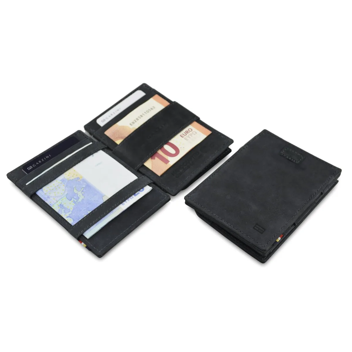 Cavare – Magic Portemonnaie Mit Münzfach In Carbon Schwarz Aus Vintage Leder