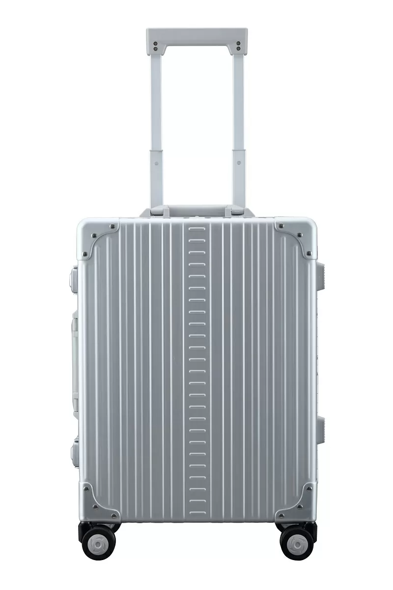 Kofferschalen aus eloxiertem Aluminium mit doppelt verstärkten Aluminiumecken, zwei zurücksetzbare TSA-Kombinationsschlösser, vier hochwertige Doppellaufrollen, innenliegende Gummidichtung sowie wasserabweisendes beschichtetes Polyesterfutter. Inneres Kompressions-Verpackungssystem, grosser gepolsterter Verpackungswürfel im Deckel.