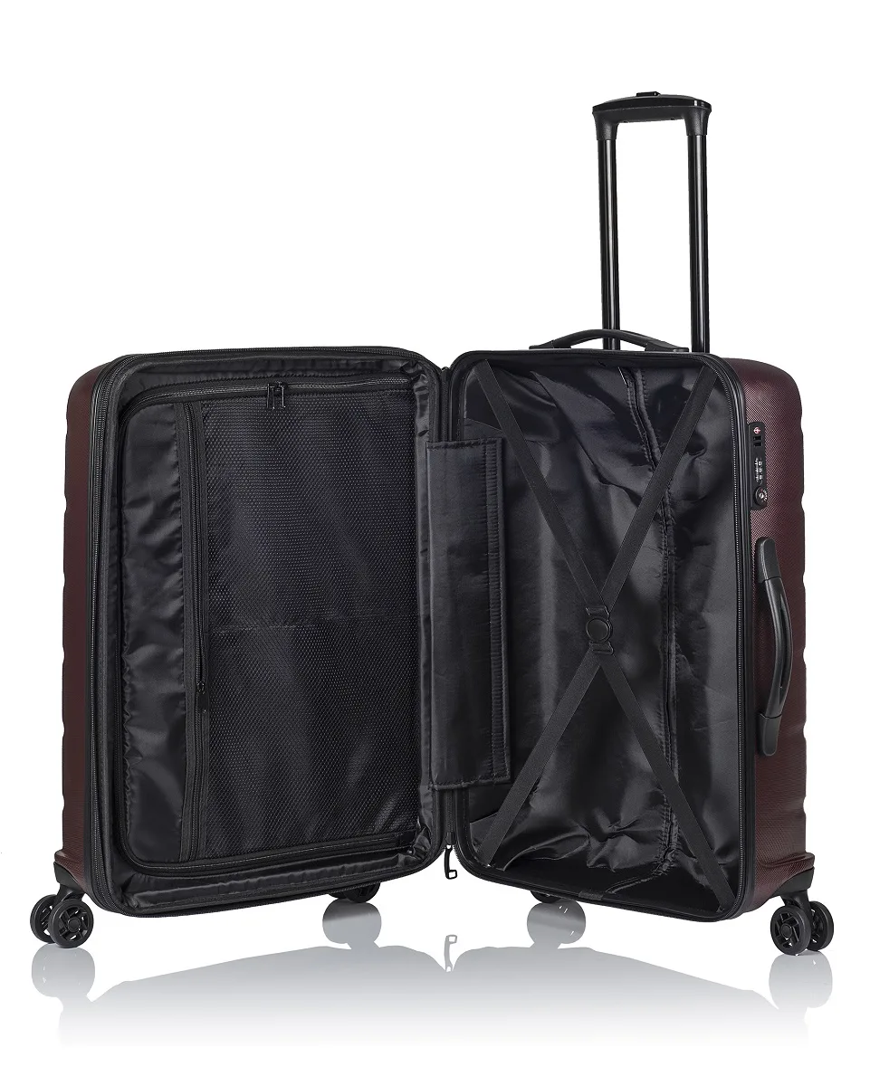 Peru, ein edler Koffer für jeden Zweck! Schlichter Trolley mit folgenden Vorzügen: Innen einseitig verschliessbar mit Reissverschluss |Innentasche | Packgurte | Dehnfalte | TSA-Zahlenschloss