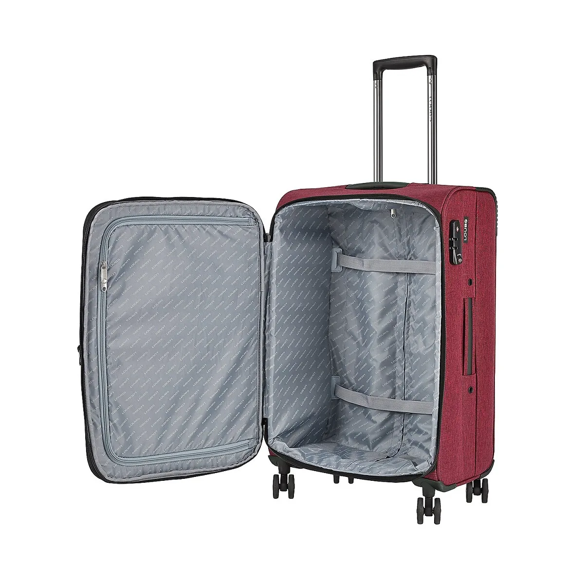 – 2 stabile Tragegriffe oben und an der Seite, integriertes TSA-Zahlenschloss für komfortables Reisen in die USA