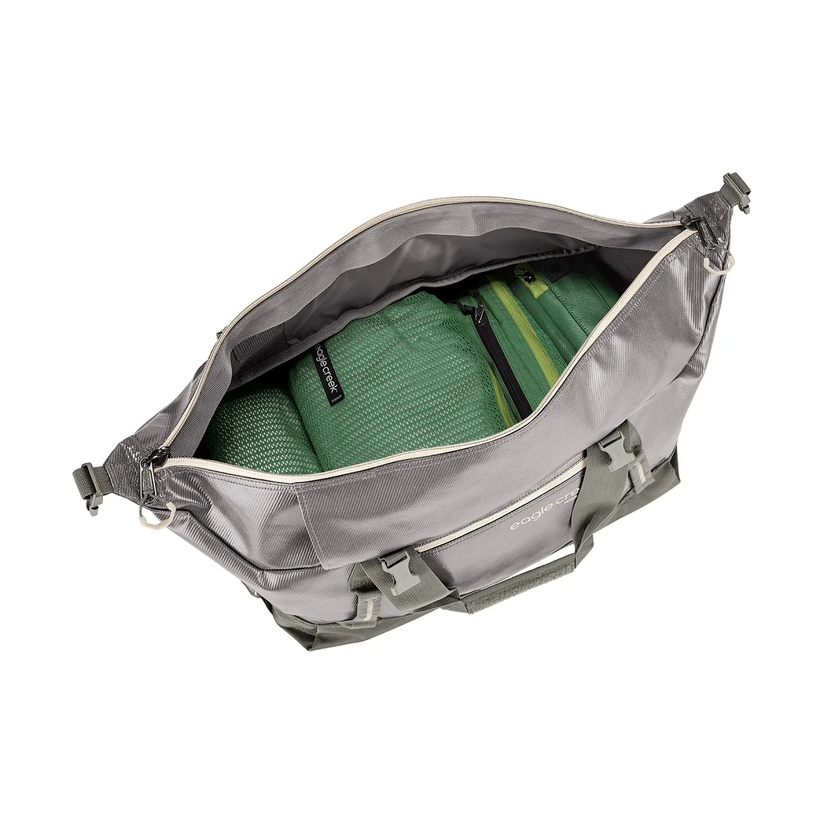 Auf dem Rücken getragen, im Flugzeug eingecheckt oder auf der Ladefläche vom Geländewagen festgezurrt – die wasserfeste und staubresistente Reisetasche von Eagle Creek hält einiges aus.