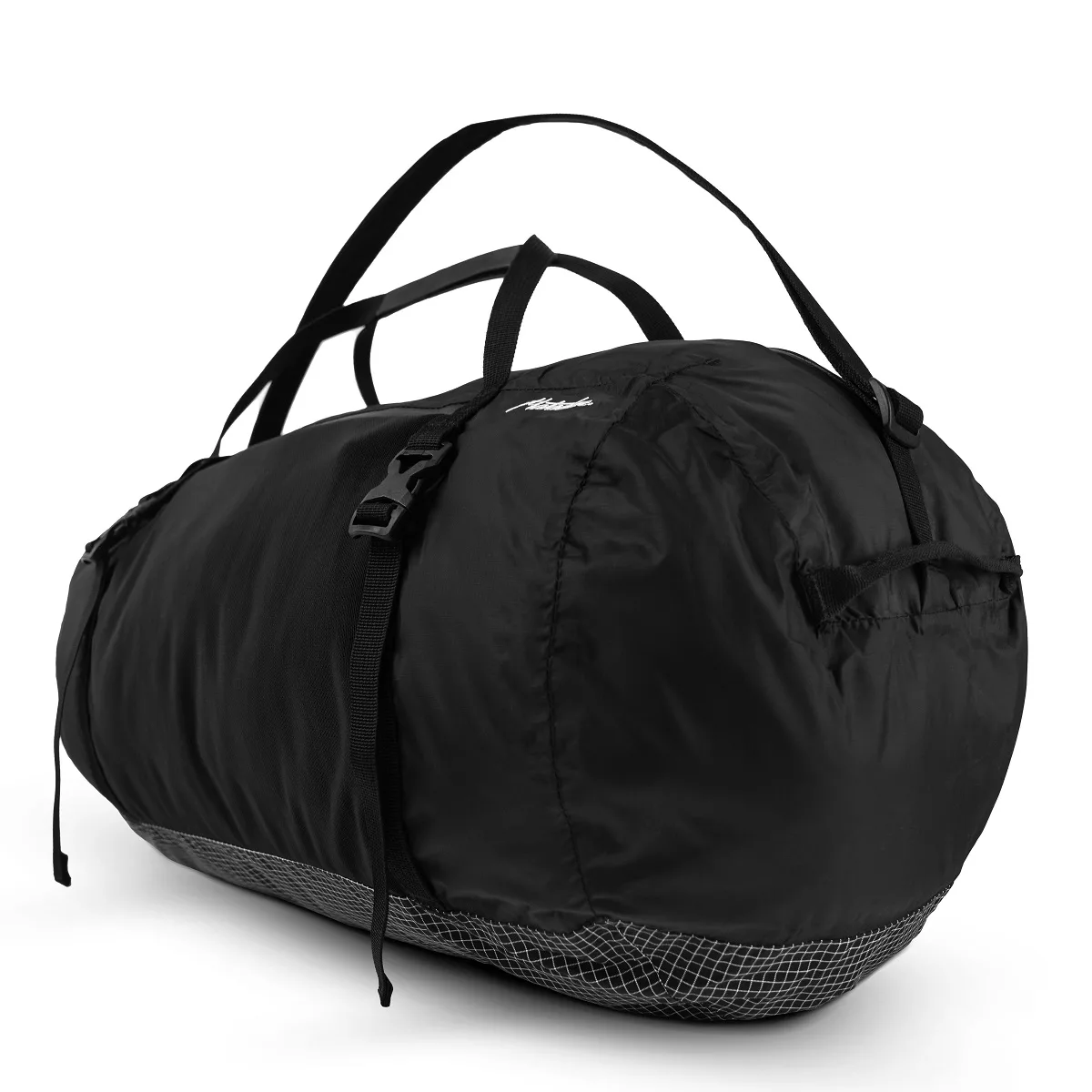 Ultraleichtes, UHMWPE-verstärktes Robic®-Nylon sorgt für außergewöhnliche Strapazierfähigkeit, während die UTS-Beschichtung, versiegelte Nähte und abgedichtete Reißverschlüsse ein wetterfestes Design ergeben. Ein verstellbarer Schultergurt und mehrere Griffe bieten verschiedene Tragemöglichkeiten. Die Kompressionsriemen mit Schnallenverschluss lassen sich zu Rucksackträgern umfunktionieren, an Gepäckträgern befestigen oder zur Befestigung externer Ausrüstung nutzen. Der extralange Reißverschluss des Hauptfachs und die zusätzlichen Taschen auf der Vorder- und Rückseite sorgen für Ordnung. Zum Verstauen wird der Rucksack in die Netztasche auf der Vorderseite gestülpt oder mit dem mitgelieferten Netzkompressionssack weiter komprimiert.