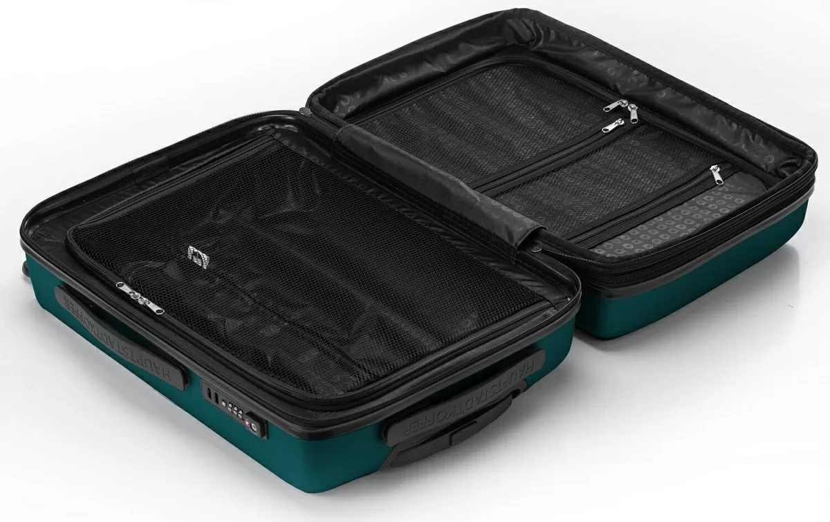 – Praktisches Interieur: Eine RV-Netztrennwand stabilisiert das Reisegepäck. Ein RV-Zwischenboden (+ 2 RV-Netztaschen für Utensilien) sowie die RV-Netztrennwand teilen den Koffer in 3 Kompartiments. Das elegante Interieur besteht aus reißfestem Polyester und ist äußerst pflegeleicht.