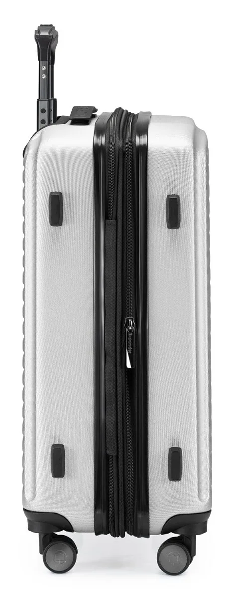 Handliches Bordcase aus 100% ABS, besonders bruch- und kratzfest. Flache Hartschale im dynamischen Look. Mit verstärkter 8 cm Koffererweiterung (bis zu 40% mehr Volumen) für enormes Packvolumen. Sicheres TSA-Zahlenschloss, versenkte Doppelrollen für mehr Stauraum und praktisches Interieur.