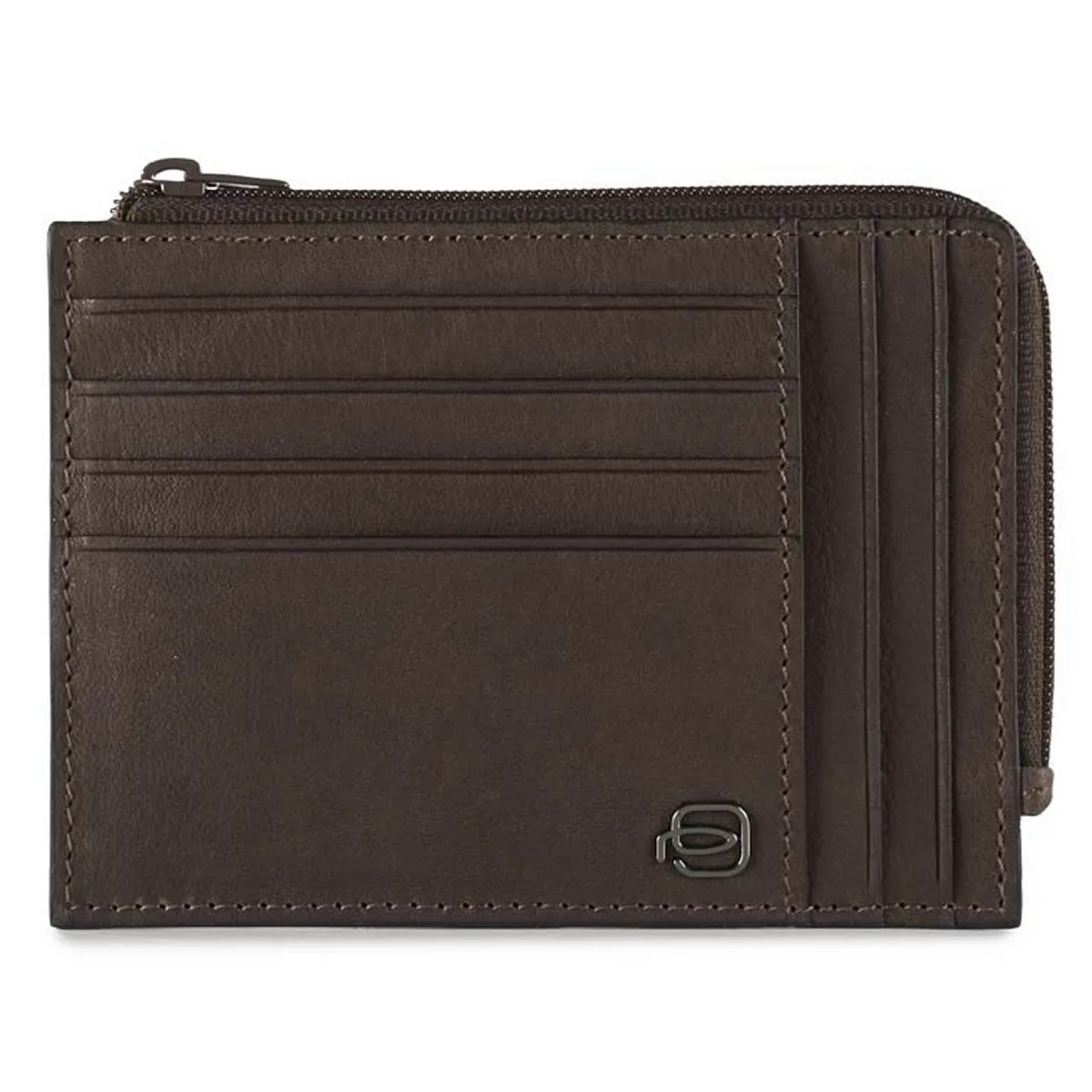 Piquadro Black Square – Reissverschluss Münzbeutel Mit Kartenfächern In Dunkelbraun