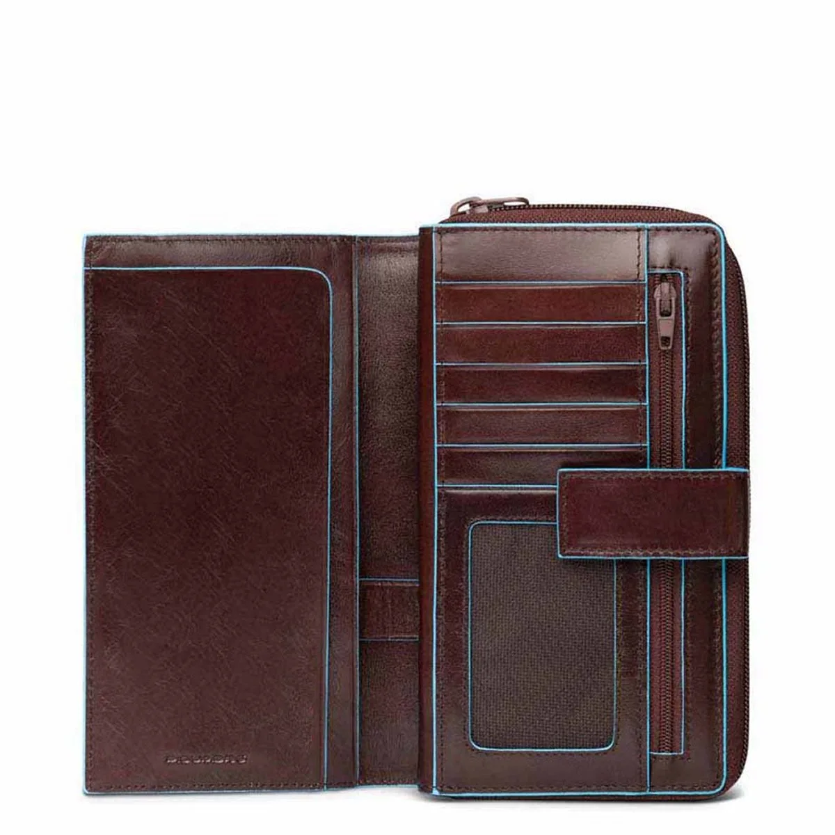 Piquadro Blue Square – Damengeldbörse Mit Münz Und Handyfach In Mahagoni