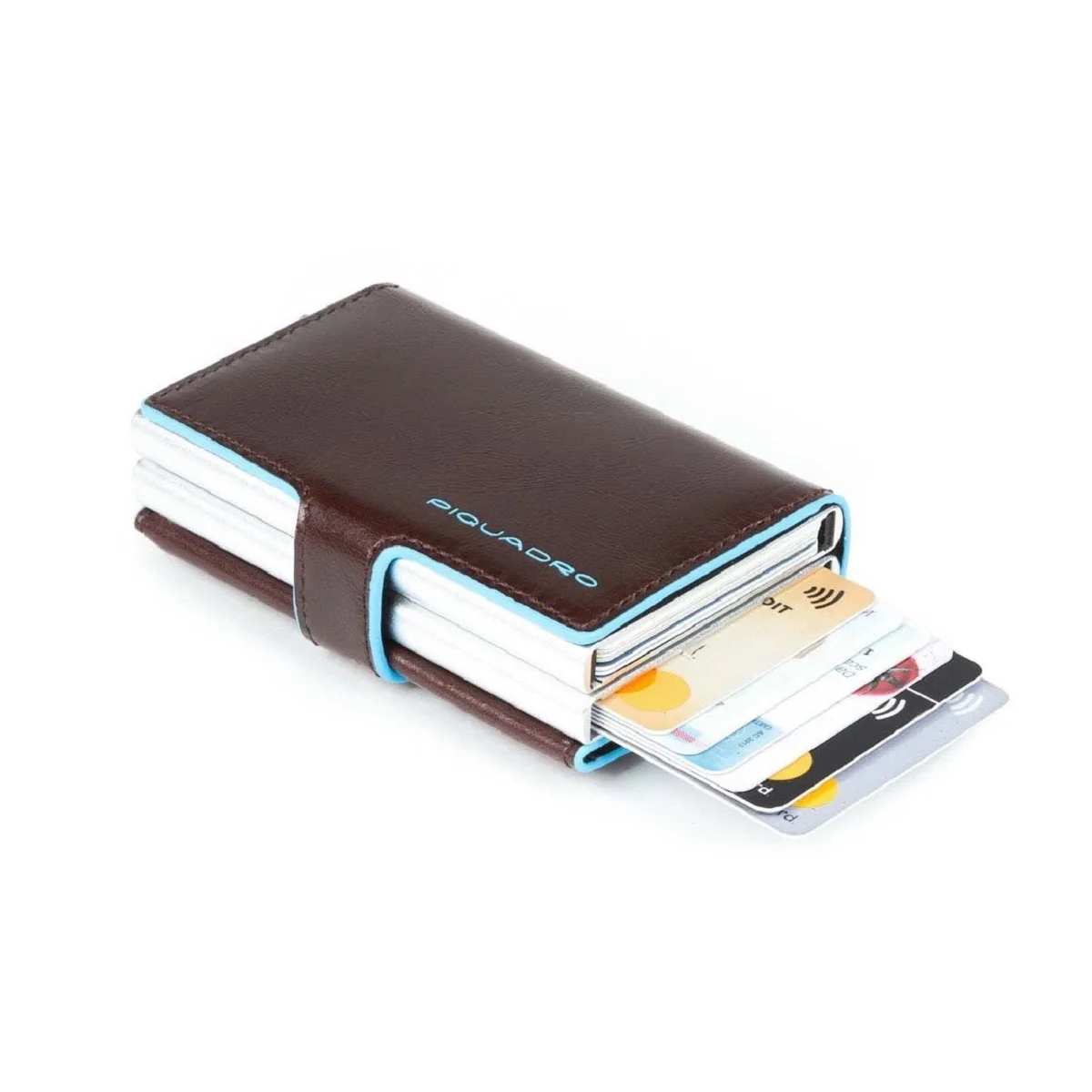 Piquadro Blue Square – Doppeltes Kreditkartenetui Mit Schiebesystem In Mahagoni