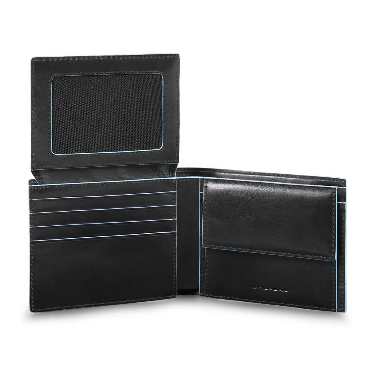 Piquadro Blue Square – Herrenbrieftasche Mit Klapp-Ausweisfenster Und Münzfach In Schwarz
