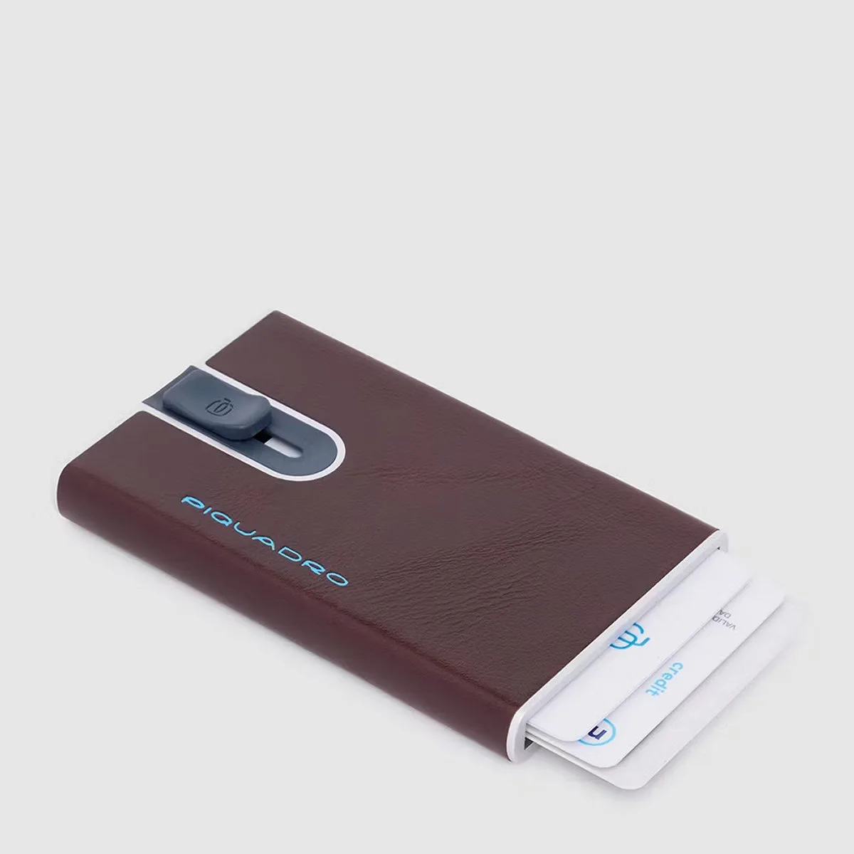 Piquadro Blue Square – Kreditkartenetui Mit Schiebesystem In Mahagoni