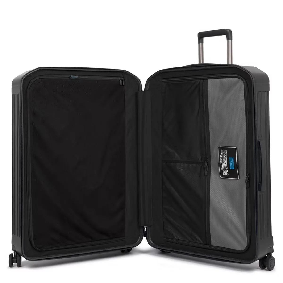 Hochwertiger Trolley von Piquadro der PQ-Light Serie aus robustem Polycarbonat in stylischem Design. Der Trolley bietet durchdachte Funktionalität und viel Stauraum mit einem geräumigen Hauptfach und separat bepackbarem Wäschefach. Vier leise und leicht zu manövrierende Rollen.