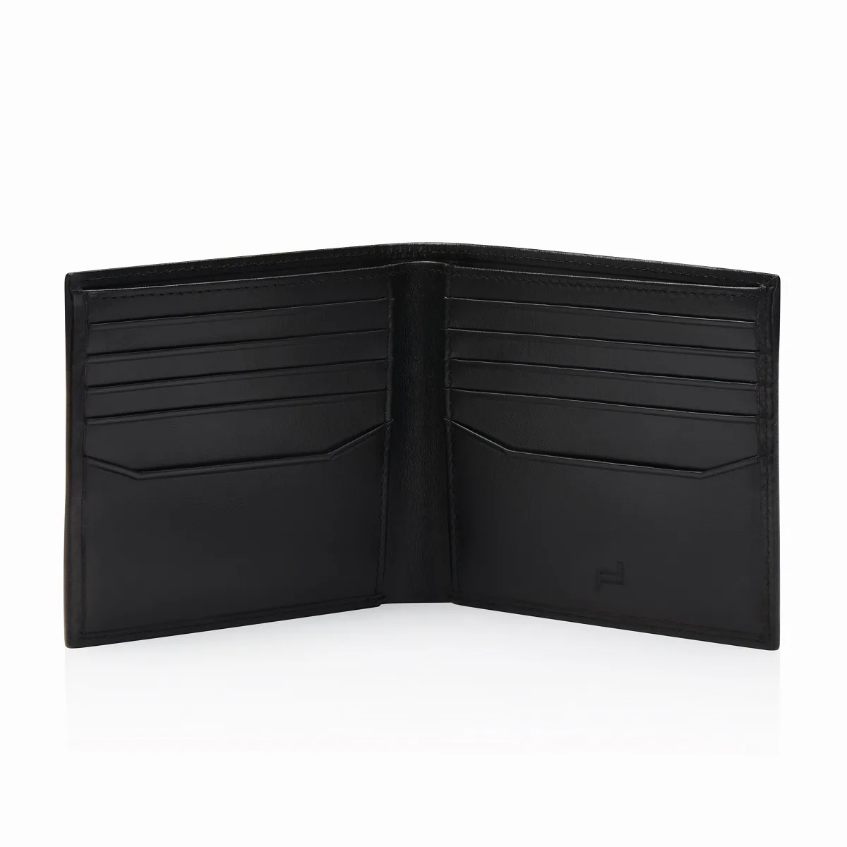 Hochwertiges glänzendes Glattleder in Schwarz, nahtlos verarbeitete Außenseiten und die charakteristische Porsche Design Logoplatte aus Metall verleihen dem Porsche Design Classic Billfold 10 einen zeitlosen und minimalistischen Stil. Die hochwertige Innenverarbeitung steht dem smarten Design in nichts nach: Das Herren-Portemonnaie begeistert mit einer großzügigen, funktionalen Aufteilung. Mit zehn Kreditkartenfächern, zwei Fächern für Banknoten sowie zwei weiteren größeren Steckfächern für z. B. Visitenkarten bietet die Brieftasche Raum für alle wichtigen Karten und Belege.