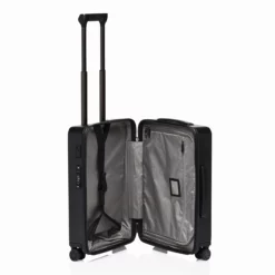 Die vom Studio F. A. Porsche entwickelte Kofferserie aus Polycarbonat ist die perfekte Fusion von Form, Funktion und Design. Der Porsche Design Roadster Hardcase 4W Trolley S in Bordgepäckgröße begeistert mit einem Gewicht von nur 3 kg und seinem dynamischen Monochrom-Look mit Porsche Signature-Details. Kugelgelagerte leichtläufige Rollen im Stil der Porsche Taycan Felgen und ein mehrstufiges Gestänge mit ergonomischem Griff sorgen für die passende Performance. Über die abgerundeten Kanten des Griffs lassen sich Taschen besonders leicht aufsetzen und abnehmen. Der unterteilte Innenraum ist mit reißfestem Gewebe im PD-Icon Design gefüttert – und ist durch einen ultrasicheren Zweiwegereißverschluss und ein TSA-Schloss geschützt.