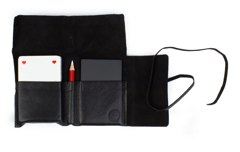 Auf Reisen macht das Jassen gleich doppelt Spass: Es hilft gegen Langeweile im Zug und beim Kontaktknüpfen während dem mehrmonatigen Road-Trip. Das praktische und stilvolle Lederetui „Trumpf-Büürli“ beinhaltet Jasskarten, eine kleine Schiefertafel und eine Kreide.