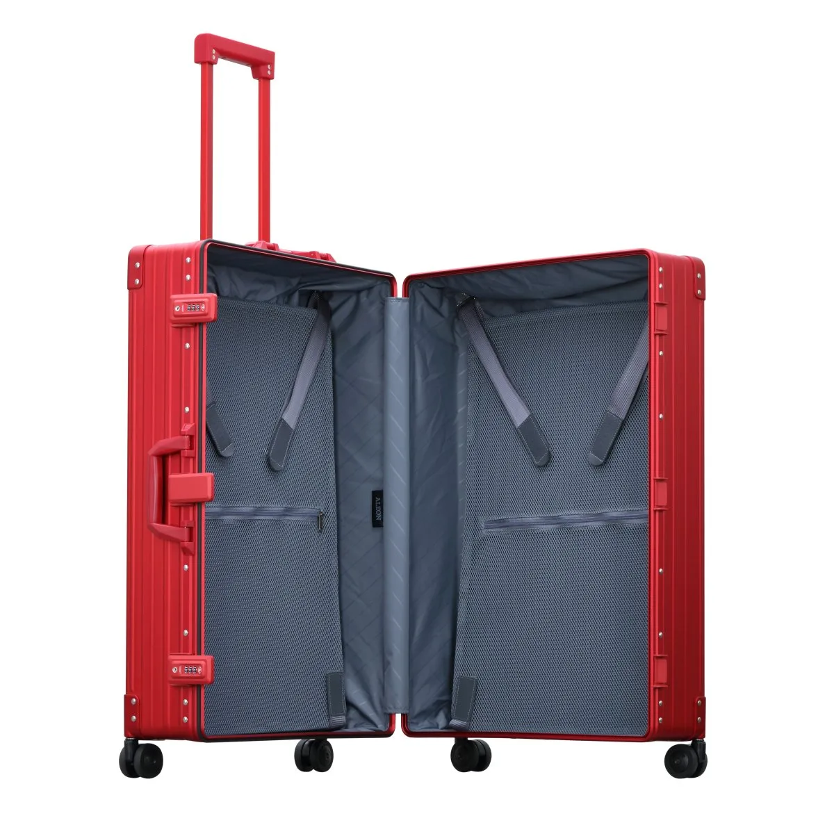 Dieser äusserst robuste Trolley besteht aus Flugzeugaluminium, das besonders langlebig und leicht ist und mit seiner genieteten Konstruktion sowie doppelt verstärkten Ecken für zusätzliche Stabilität sorgt. Zwei TSA Schlösser sorgen dafür, dass der Kofferinhalt stets sicher und geschützt bleibt. Eine eingebaute, nahtlose Gummidichtung macht das Gehäuse wasserdicht und hält Feuchtigkeit und Schmutz fern. Aleons Innenfutter ist schmutz- und wasserabweisend mit einem nicht abrasiv beschichteten Polyestergewebe, das den Gegenständen keinen Schaden zufügt.