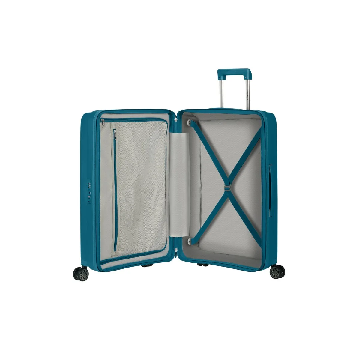 Die Spinner von Samsonite aus der Serie Hi-Fi ermöglichen Ihnen ein angenehmes und noch einfacheres Reisen. Die Koffer kombinieren ein modernes Design mit versteckter Erweiterbarkeit. Zudem verfügen die Koffer über einen abwaschbaren Innenraum und gefederte Räder. Hergestellt werden die Spinner aus langlebigem und widerstandsfähigem Polypropylen. Weiter zeichnen sich die Koffer durch den arretierbaren und vollständig verstaubaren Teleskopgriff, das TSA-Zahlenschloss und den wasserabweisenden, beschichtete Reissverschluss aus.