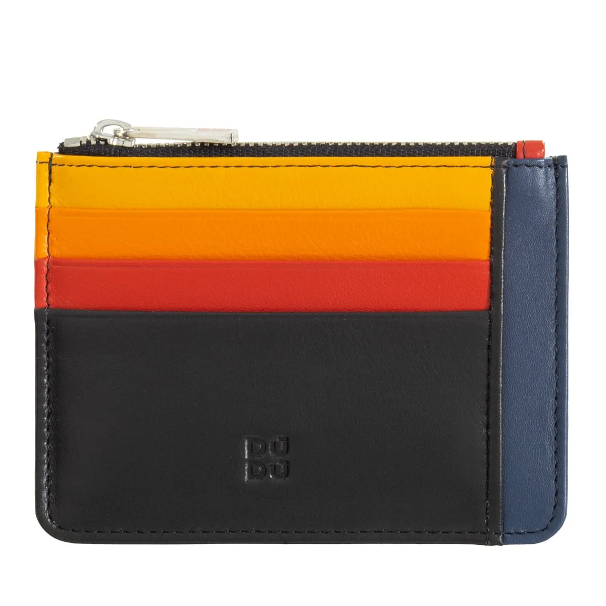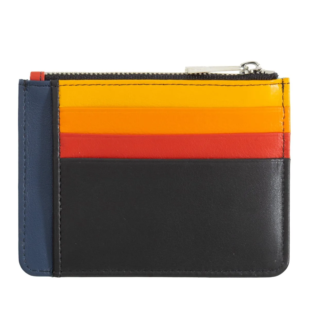 Flach und kompakt. Mehrfarbiges Kreditkartenetui aus weichem Nappa Kalbsleder, schliesst mit YKK Reissverschluss.