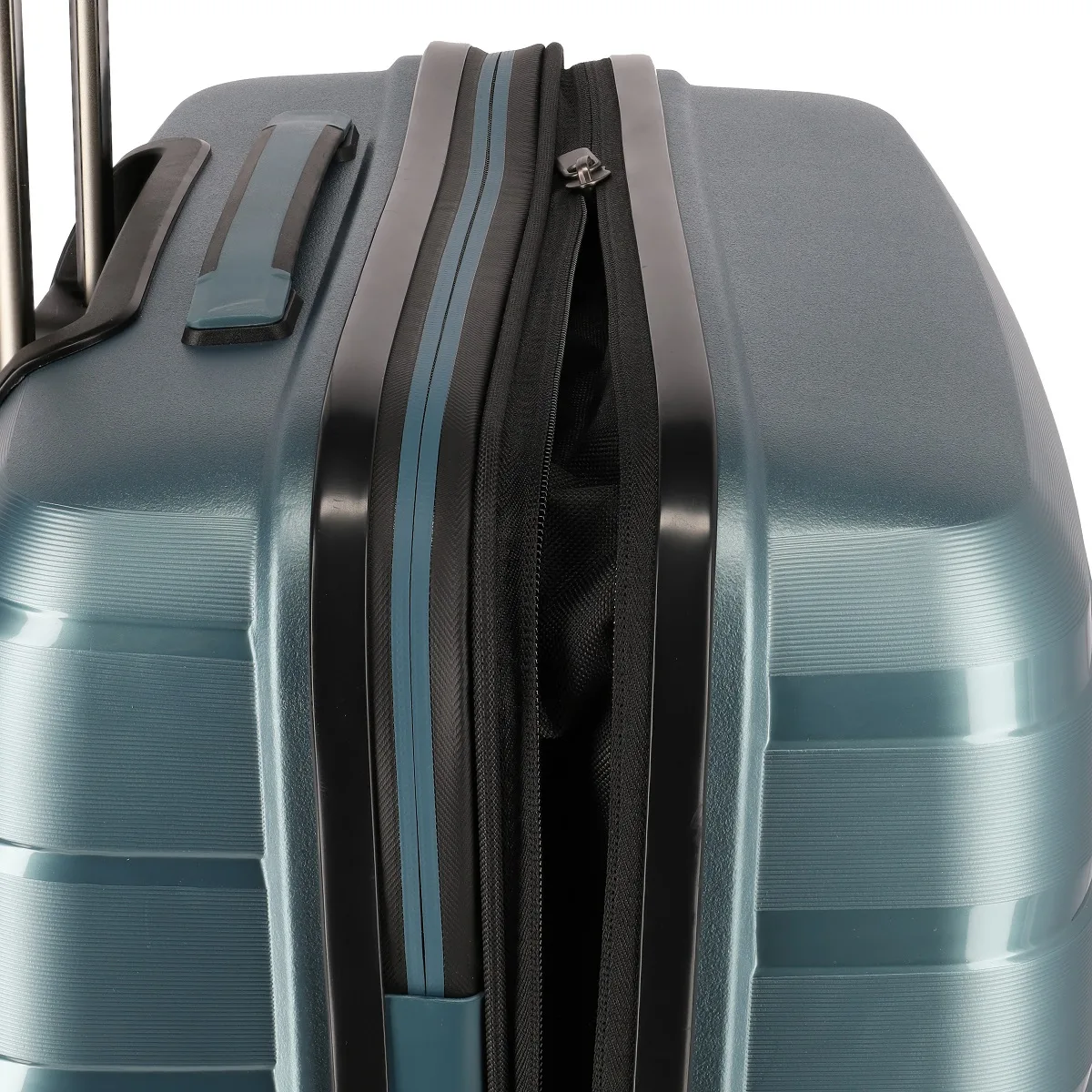 - Beidseitige Packwände mit zusätzlichen Reißverschlusstaschen