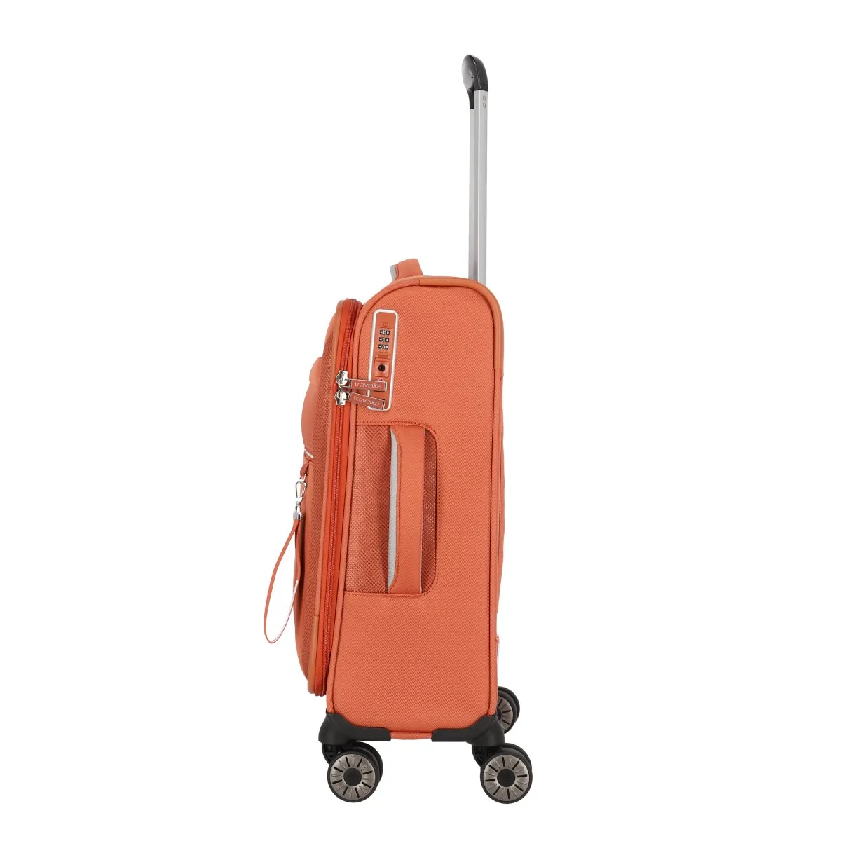 Der Handgepäck Trolley zeichnet sich vor allem durch die robusten Kanten aus. Der Koffer ist mit einem geräumigen Hauptfach mit zwei Packgurten, Nebenfächern und einem Aussenfach ausgestattet. So sind Ihre Reiseutensilien jederzeit sicher und geschützt verstaut. Der Trolley verfügt über ein versenktes TSA-Zahlenschloss, welches für Einreisen in die USA oder Kanada essentiell ist. Der Koffer lässt sich dank den 4 Doppelrollen, der arretierbaren Leichtmetall-Teleskopstange und den ergonomischen Oberhand- und Seitenhandgriffen angenehm transportieren.