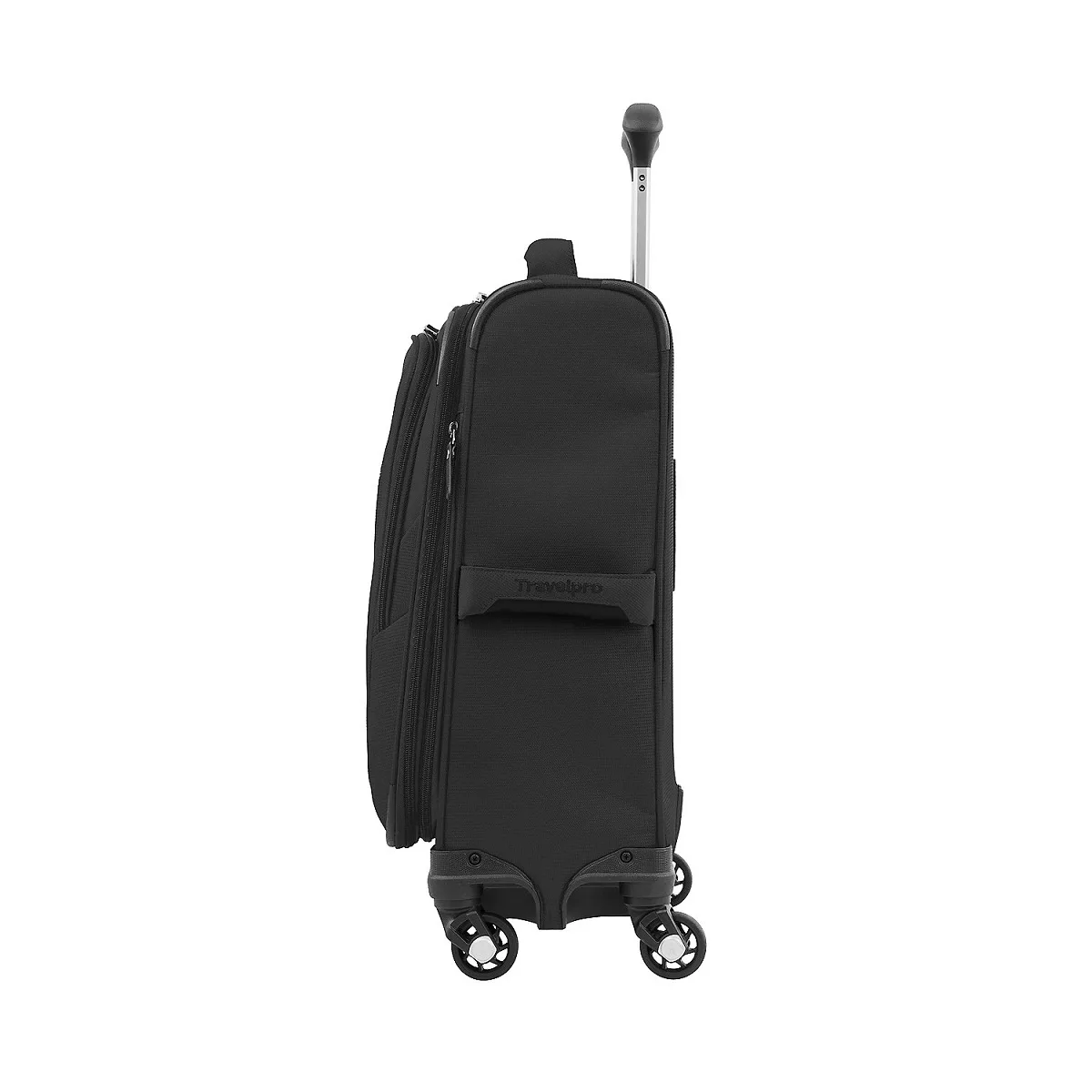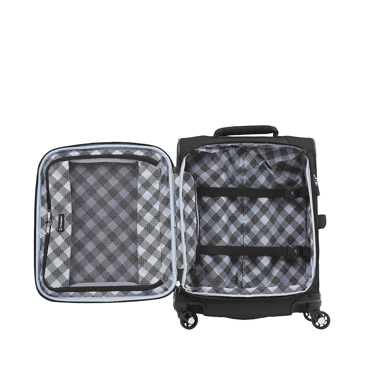 Leicht wie nie zuvor, langlebig und robust wie immer: Die neue Maxlite 5-Kollektion von Travelpro bietet einmal mehr das Nonplusultra in Sachen leichtgewichtiges und unbeschwertes Reisen. Gefertigt aus dicht gewebtem Polyestermaterial, punkten die Gepäckstücke dieser Serie mit minimalem Eigengewicht und sind dabei dank wasser- und schmutzabweisender DuraGuard®-Beschichtung wunderbar stabil und widerstandsfähig. Stylish und superleicht ist der schlanke Handgepäcktrolley der Kollektion ideal für kurze bis mittellange Reisen, denn sein Volumen lässt sich über einen umlaufenden Reißverschluss bequem erweitern. Zusätzlich punktet der robuste Spinner mit einer Vielzahl funktionaler Features: Vier um 360° drehbare Rollen sorgen für mühelose Rundum-Mobilität und der leichte und dennoch stabile PowerScope Lite-Trolleygriff aus Aluminium lässt sich problemlos auf unterschiedliche Körpergrößen einstellen. Ein großes Deckelfach mit Reißverschluss bietet Stauraum für Hemden oder andere empfindliche Kleidungsstücke, während die verstellbaren Packriemen im Innenraum alles an seinem Platz halten. Kleinteile passen in ein seitliches Reißverschlussfach und ein leicht zugängliches Frontfach hält während der Reise alles Wichtige schnell griffbereit – intelligentes Packen leicht gemacht!