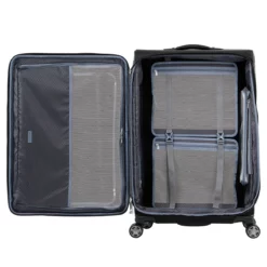 Leicht wie nie zuvor, langlebig und robust wie immer: Die neue Maxlite 5-Kollektion von Travelpro bietet einmal mehr das Nonplusultra in Sachen leichtgewichtiges und unbeschwertes Reisen. Gefertigt aus dicht gewebtem Polyestermaterial, punkten die Gepäckstücke dieser Serie mit minimalem Eigengewicht und sind dabei dank wasser- und schmutzabweisender DuraGuard®-Beschichtung wunderbar stabil und widerstandsfähig. Stylish und superleicht ist der schlanke Handgepäcktrolley der Kollektion ideal für kurze bis mittellange Reisen, denn sein Volumen lässt sich über einen umlaufenden Reißverschluss bequem erweitern. Zusätzlich punktet der robuste Spinner mit einer Vielzahl funktionaler Features: Vier um 360° drehbare Rollen sorgen für mühelose Rundum-Mobilität und der leichte und dennoch stabile PowerScope Lite-Trolleygriff aus Aluminium lässt sich problemlos auf unterschiedliche Körpergrößen einstellen. Ein großes Deckelfach mit Reißverschluss bietet Stauraum für Hemden oder andere empfindliche Kleidungsstücke, während die verstellbaren Packriemen im Innenraum alles an seinem Platz halten. Kleinteile passen in ein seitliches Reißverschlussfach und ein leicht zugängliches Frontfach hält während der Reise alles Wichtige schnell griffbereit – intelligentes Packen leicht gemacht!