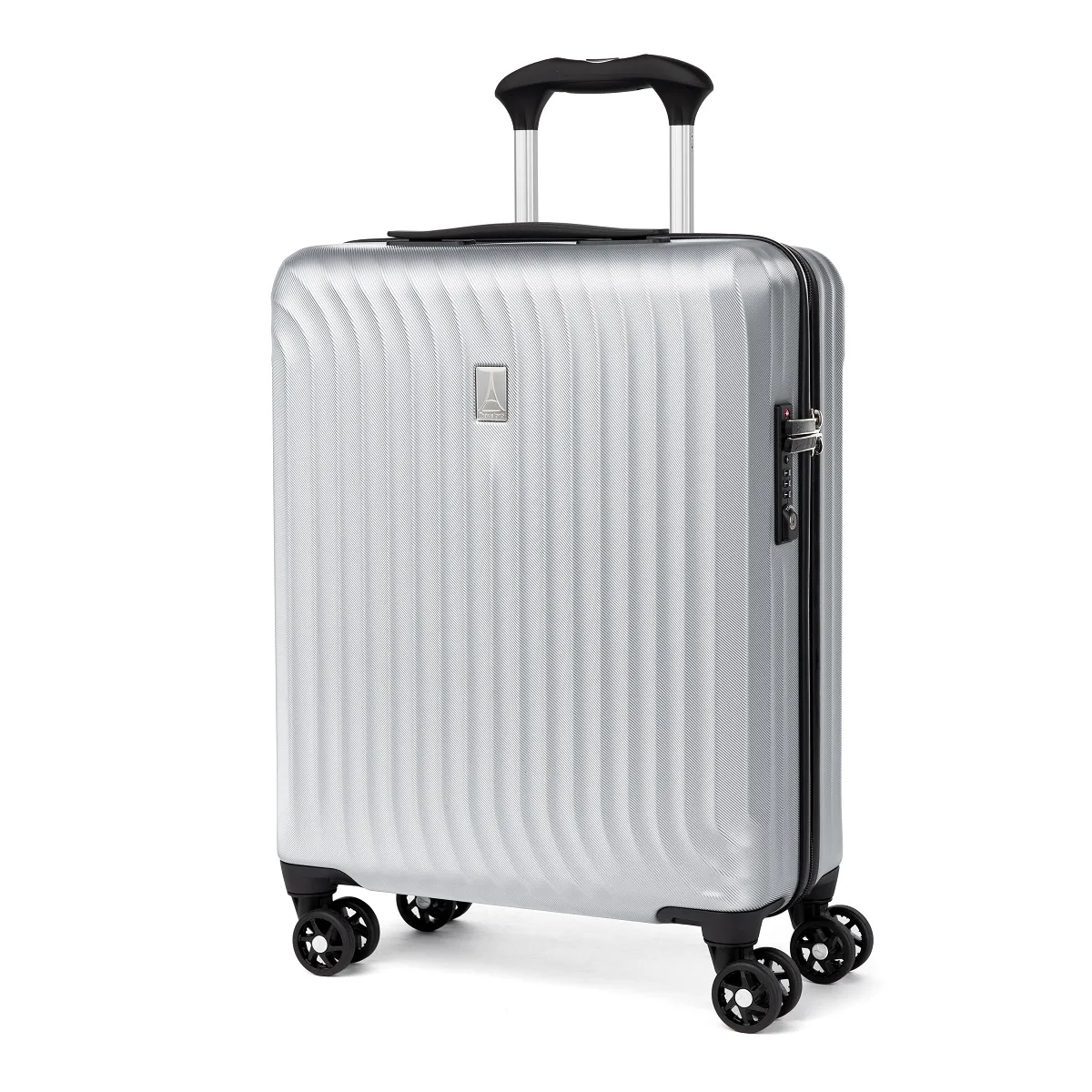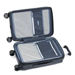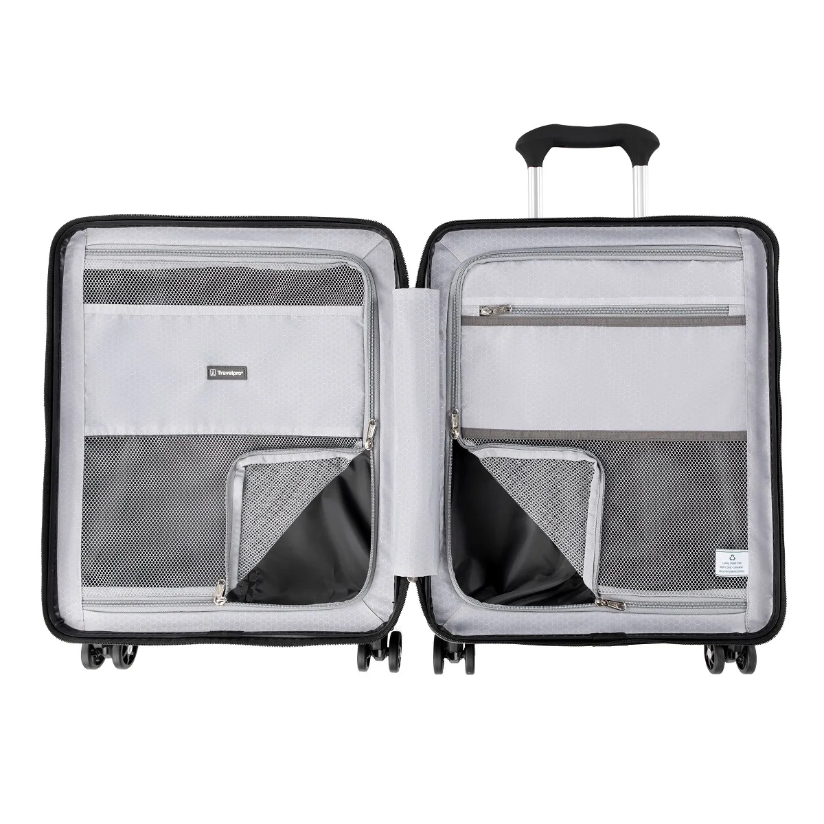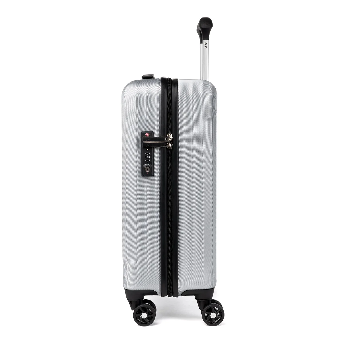 Er erfüllt die veröffentlichten Größenbeschränkungen für das Handgepäck vieler internationaler Fluggesellschaften und eignet sich hervorragend für Kurztrips oder zum Packen Ihrer wichtigsten Dinge an Bord. Mit einem eingebauten Schloss, das es den TSA-Behörden ermöglicht, die Tasche für die Inspektion sicher zu öffnen und wieder zu verschließen, kann diese Tasche auch problemlos eingecheckt werden. Das Außenmaterial aus 100 % Polycarbonat ist so konzipiert, dass es sich bei einem Aufprall verformt, um Risse oder Einstiche zu verhindern. Das elegante Außenfinish reduziert sichtbare Kratzer oder Schrammen. Das Innenfutter dieses Handgepäcks besteht zu 100 % aus recycelten Plastikflaschen, um Umweltabfälle zu reduzieren, und ist mit H2O Guard behandelt, um Feuchtigkeit abzuweisen. Zwei Innenfächer mit Reißverschluss und ein integriertes Zubehörfach sorgen dafür, dass alles, was Sie einpacken, organisiert, getrennt und sicher ist. Gleiten Sie mühelos auf acht leichtgängigen Spinner-Rädern, die sich um 360° drehen lassen. Der PowerScope Lite-Griff lässt sich in zwei Positionen (96,5 cm und 107,95 cm) arretieren und eignet sich für Benutzer mit unterschiedlicher Körpergröße. Der patentierte Contour Grip mit gummierten Kontaktpunkten macht das Manövrieren einfach und bequem.