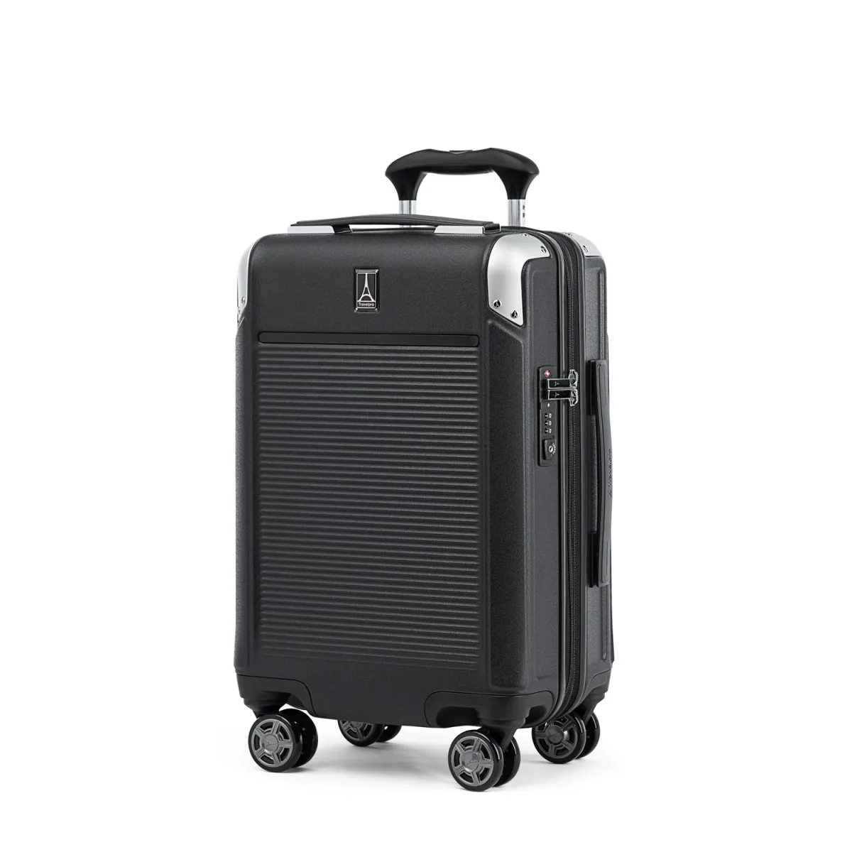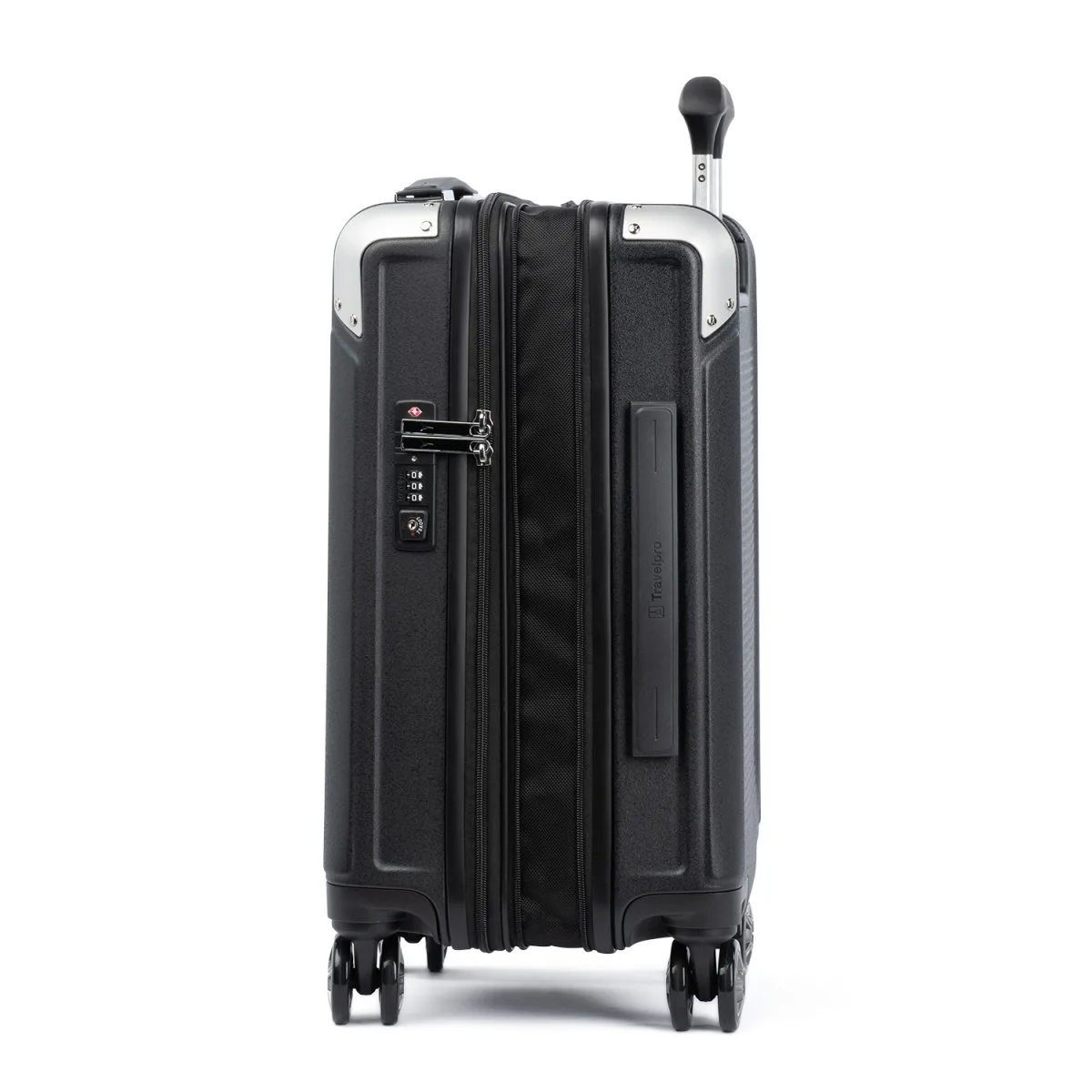 Das Clamshell-Design mit zwei Trennwänden mit Reißverschluss sorgt dafür, dass der Inhalt getrennt und sicher aufbewahrt werden kann. Mehrere Zubehörtaschen sorgen für Ordnung und eine praktische, wasserfeste Tasche bietet Platz für feuchte Gegenstände oder Toilettenartikel. Unterwegs fliegt diese kompakte Schönheit mit präziser Kontrolle und mühelosem Rollen, dank des exklusiven PrecisionGlide™-Systems von Travelpro® – acht selbstausrichtende MagnaTrac®-Spinner-Räder, die von einem robusten, vierfach verstellbaren PowerScope Lite-Griff mit komfortablem Contour Grip geführt werden.