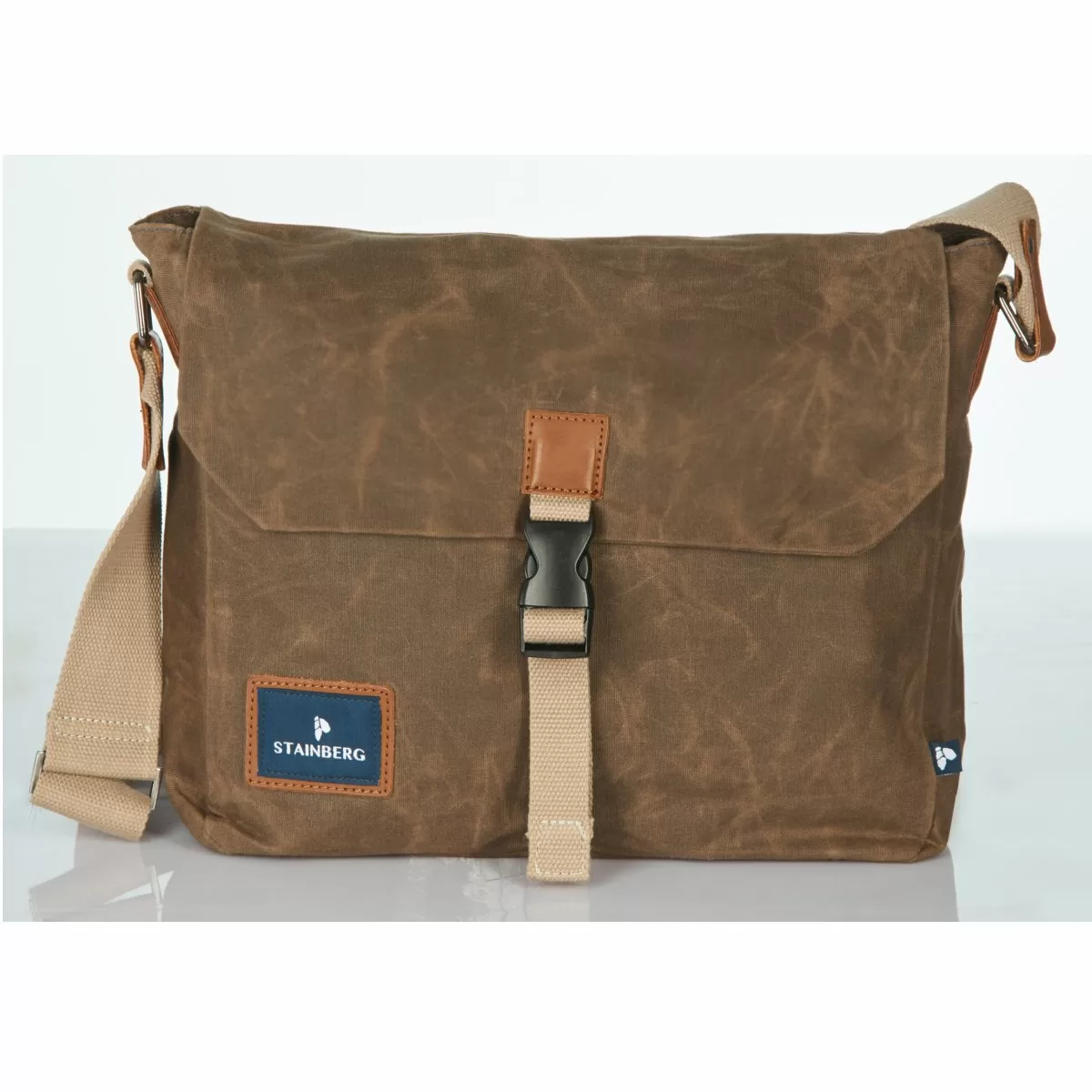 Umhängetasche in praktischer Form aus gewachstem Canvas. Neben einem Laptop-/Tabletfach und einem RV Fach, gehören diverse Steckfächer zur praktischen Innenausstattung der Stainberg Urban DJ. Zudem ist die Urban DJ aufsteckbar und verfügt über einen komfortablen Umhängeriemen.