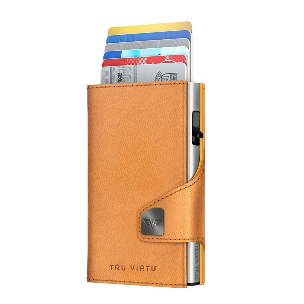 - Platz für bis zu 12 Plastikkarten (Alu-Etui: 5 Bankkarten, Mix aus max. 4 geprägten und 1 nichtgeprägten Karte / Apfellederumschlag: bis zu 7 Karten, Geldscheine, Belege, Visitenkarten)