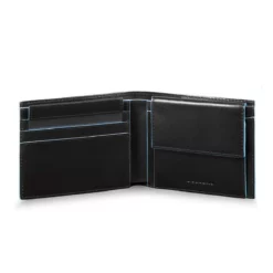 Piquadro Blue Square – Herrenbrieftasche Mit Klapp-Ausweisfenster Und Münzfach In Schwarz